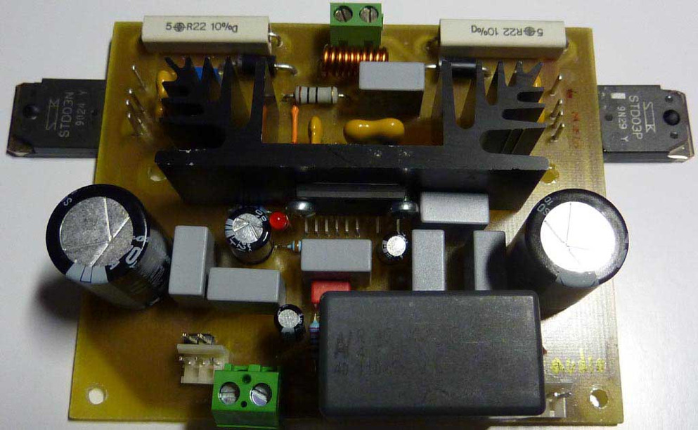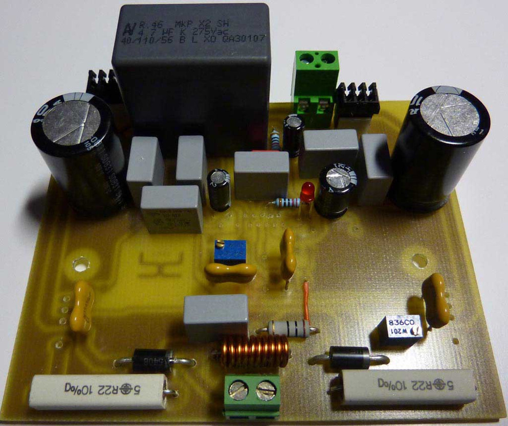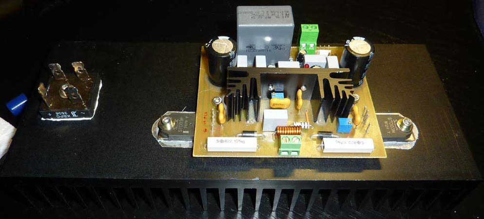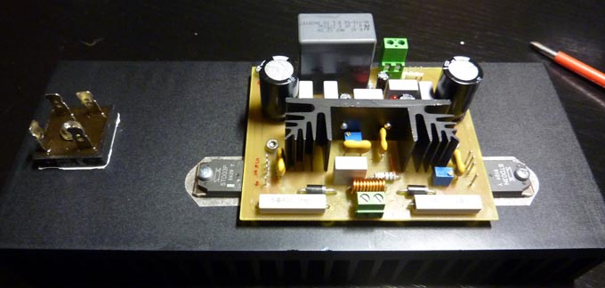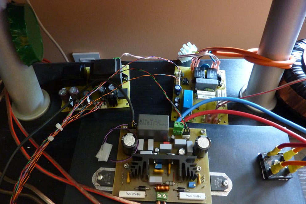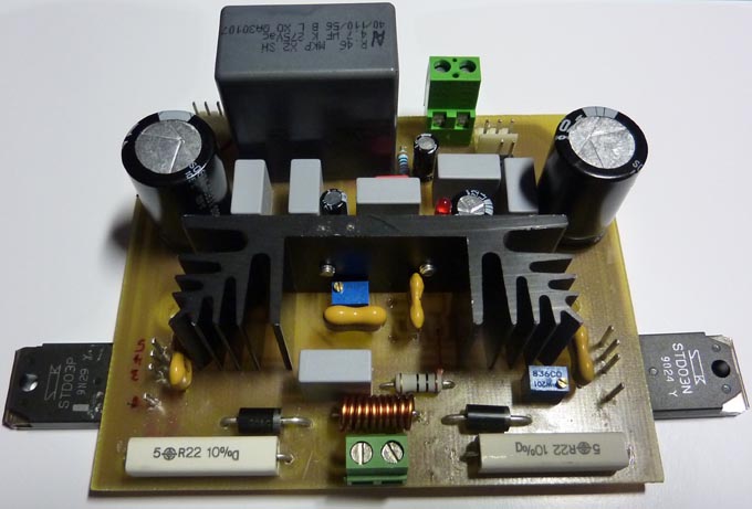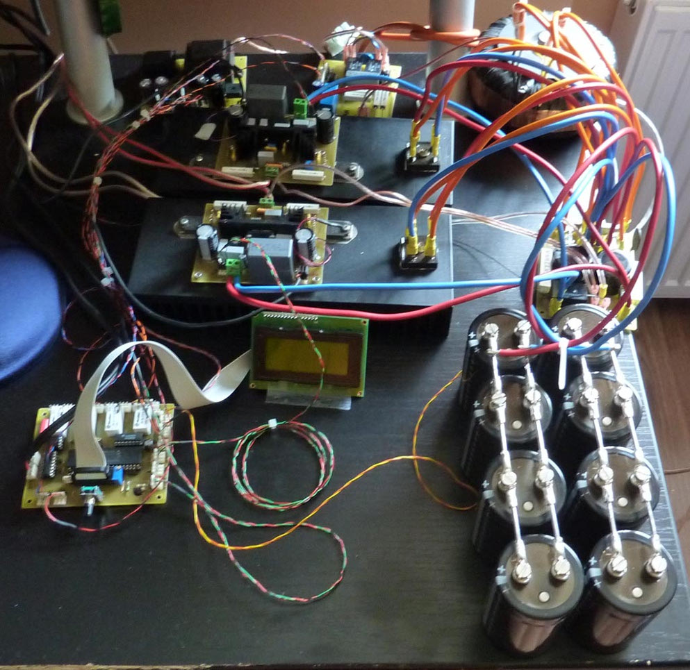 Prototipna postavitev gasilska slika. :-) Vidna je tudi banka kondenzatorjev glavnega usmernika.