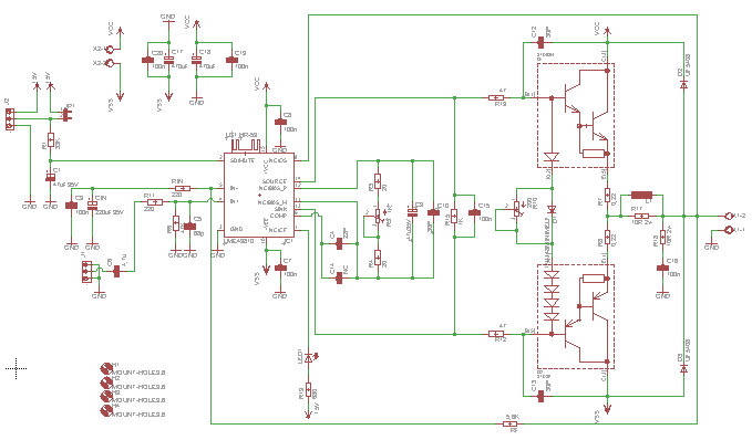 Vcc in Vee sta napetosti usmernika. Predvidena napajalna napetost je bila +/ - 50V