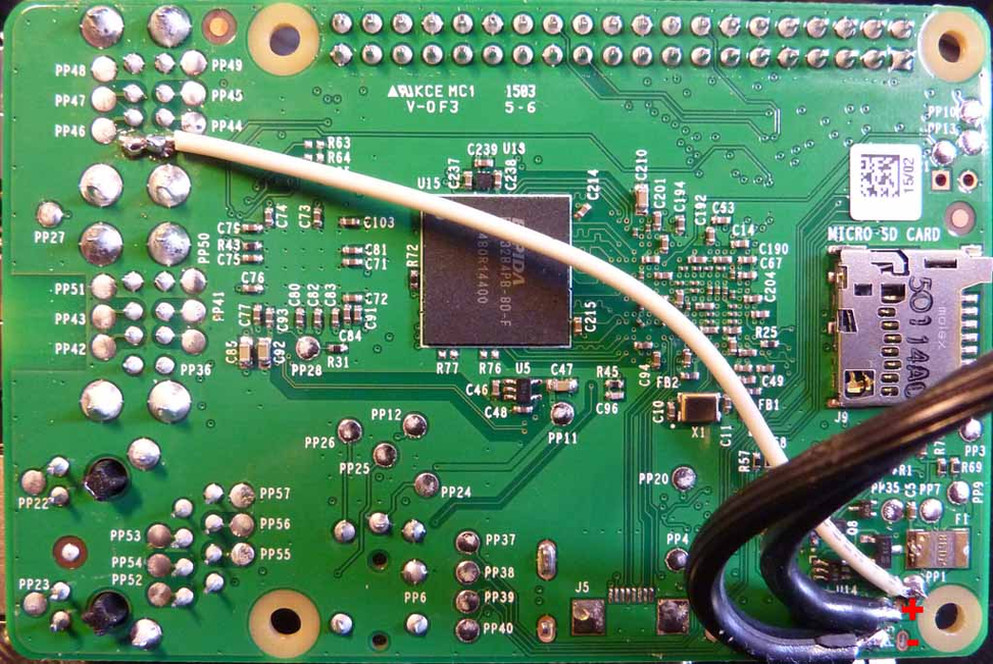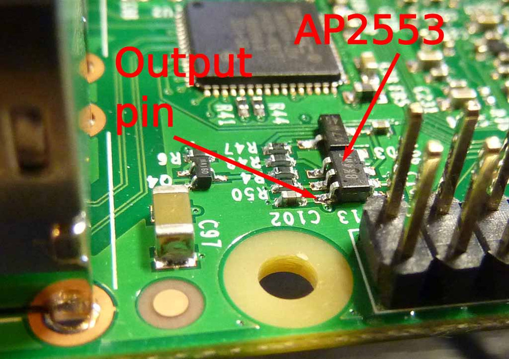 ima na na mojem RPI oznako BK4. Uspelo mi je modificirati vezje tako, da sem izhodni pin čipa dvignil s tiskanega vezja, in potegnil žico direktno