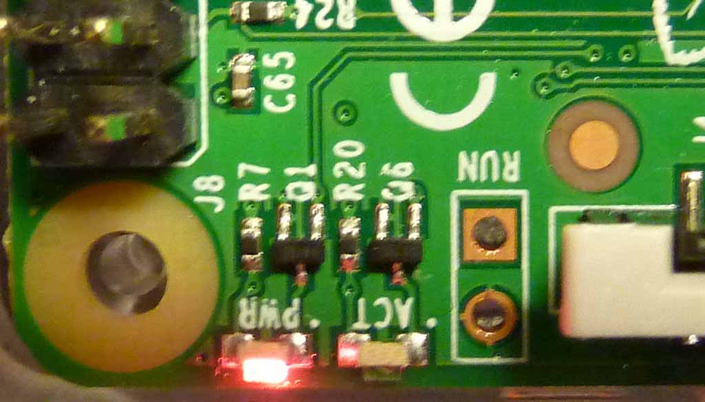 Slika 3: Nad mestom konektorja za reset tipko je napisano RUN