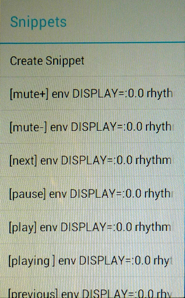 Sedaj lahko vpišemo ukaz za Rhythmbox. Posamezen ukaz mora zgledati takole: