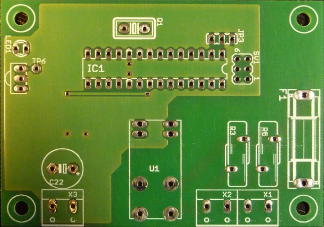 Prvič sem na vezju predvidel tudi možnost programiranja procesorja, ko je ta že v vezju. V ta namen je na vezju konektor SV1, preko katerega procesor