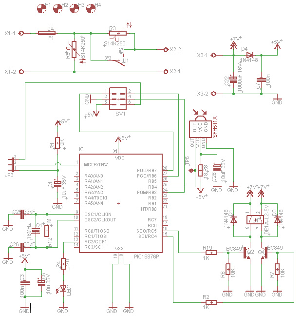 Na zalogi sem imel en 16F876 procesor, ki je za takšno nalogo sicer malo preobilen, saj sem porabil le 4 vhode/izhode.