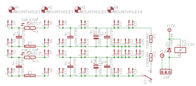 mostičkov ojačevalca, banke kondenzatorjev, mehak vklop banke kondenzatorjev,