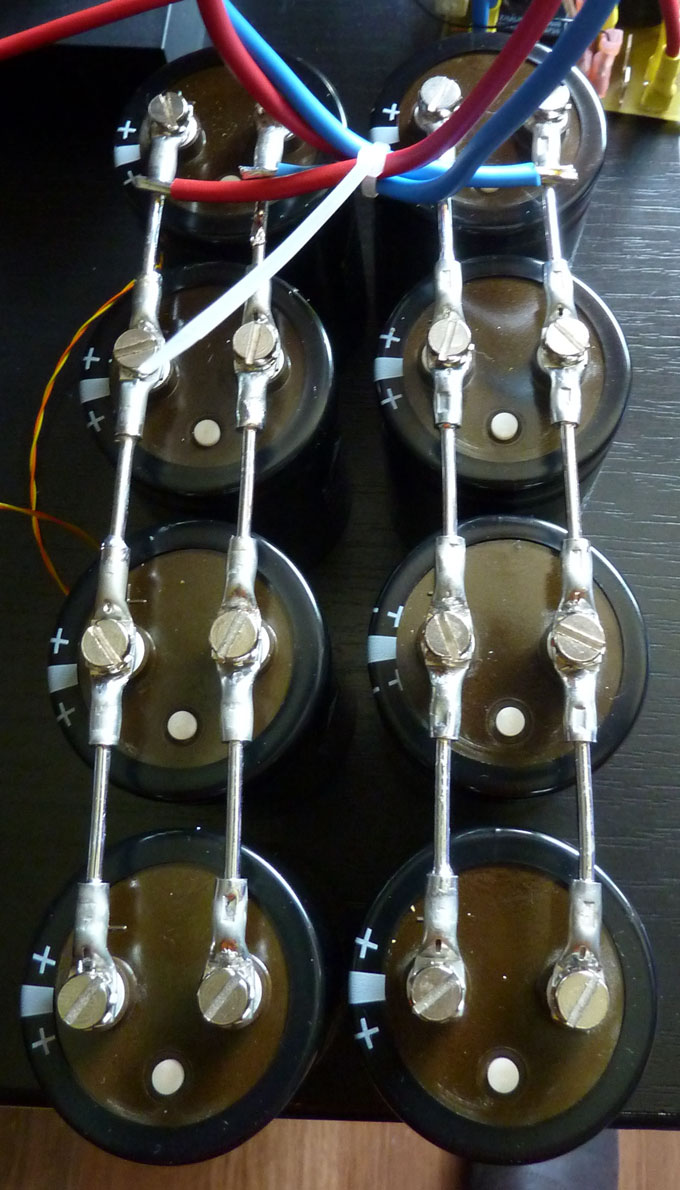 Na banki trenutno manjkajo še 100nF kondenzatorji vezani k posameznemu elektrolitu.