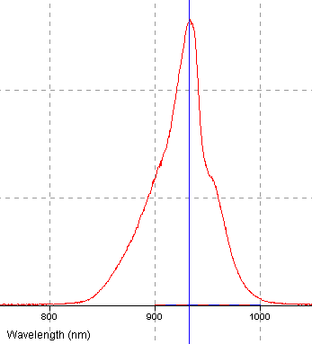 Spektralni analizator natančno pokaže valovno dolžino oddajne diode. V tem primeru 933nm.