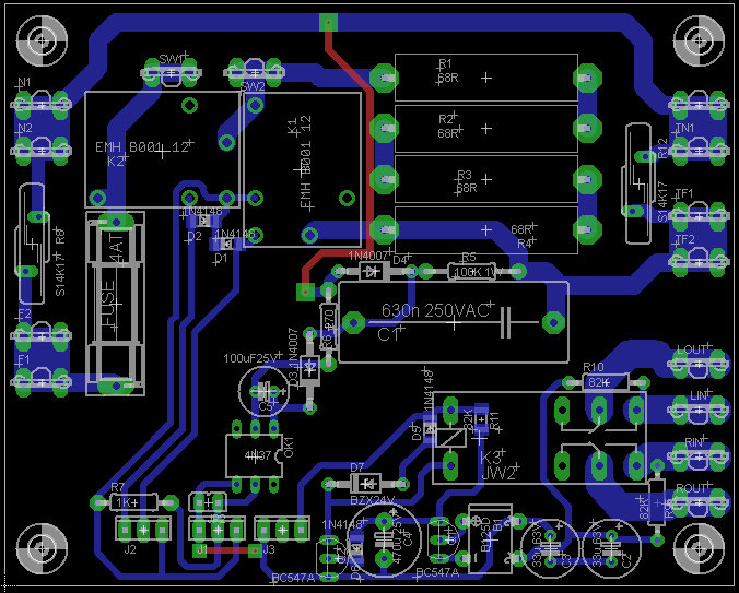 Zgornja stran vezja za mehak vklop in zaščito zvočnikov: