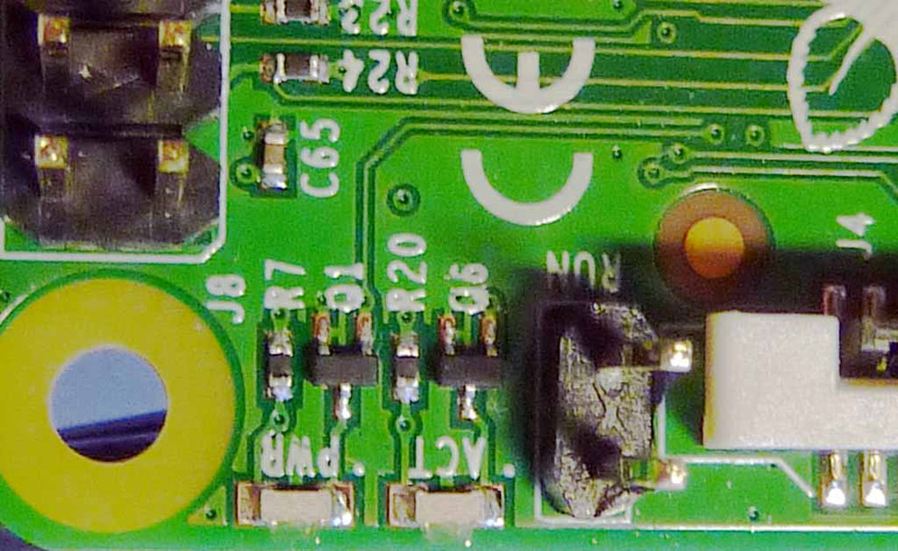 Slika 3: Nad mestom konektorja za reset tipko je napisano RUN